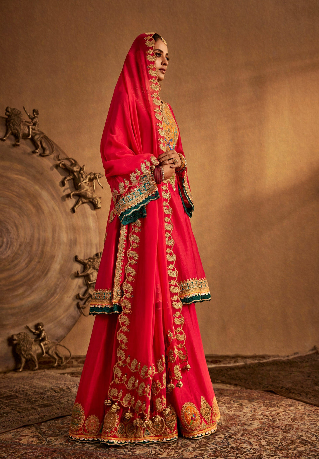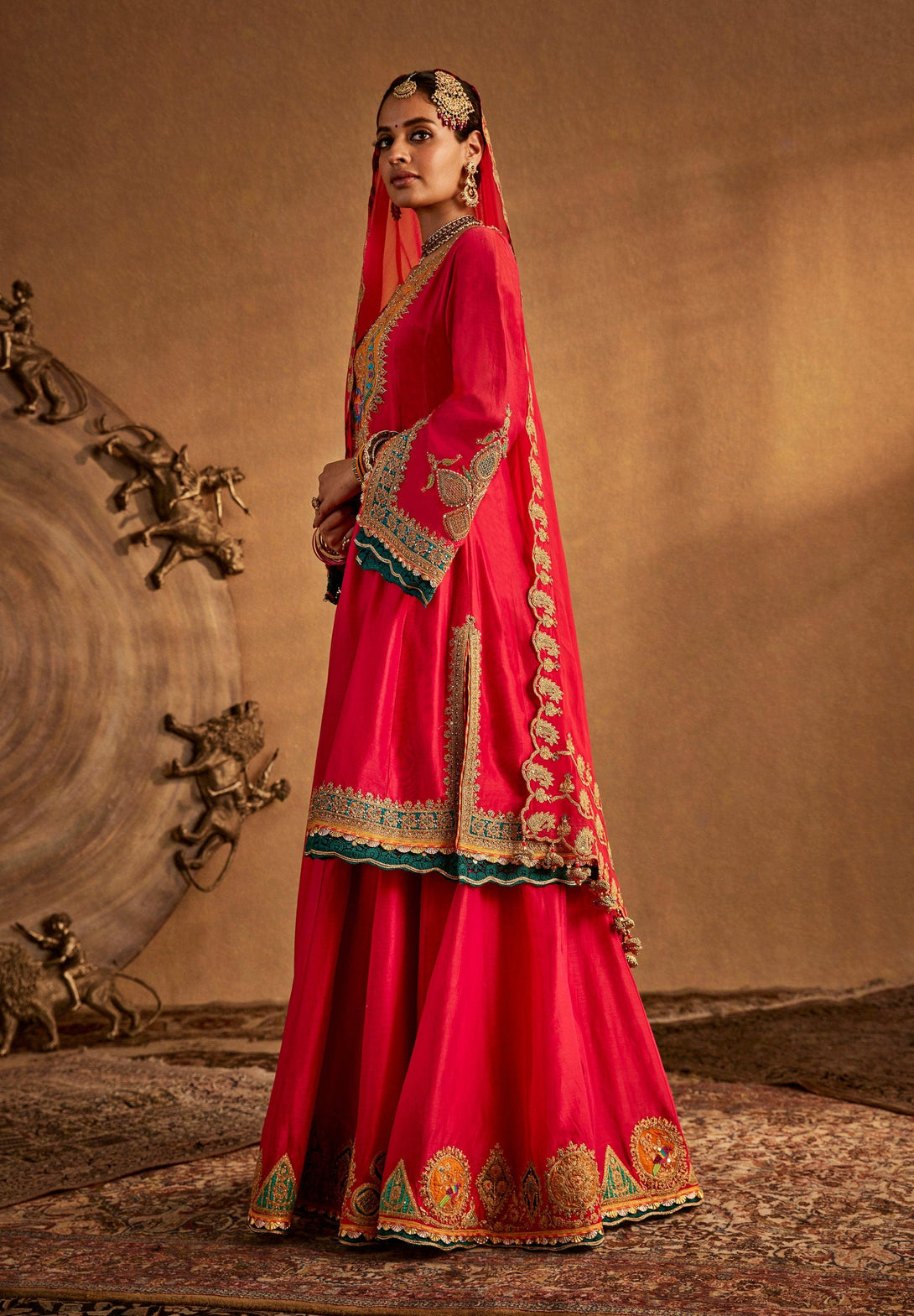 •RAW SILK EMBROIDERED FRONT WITH HANDMADE WORK