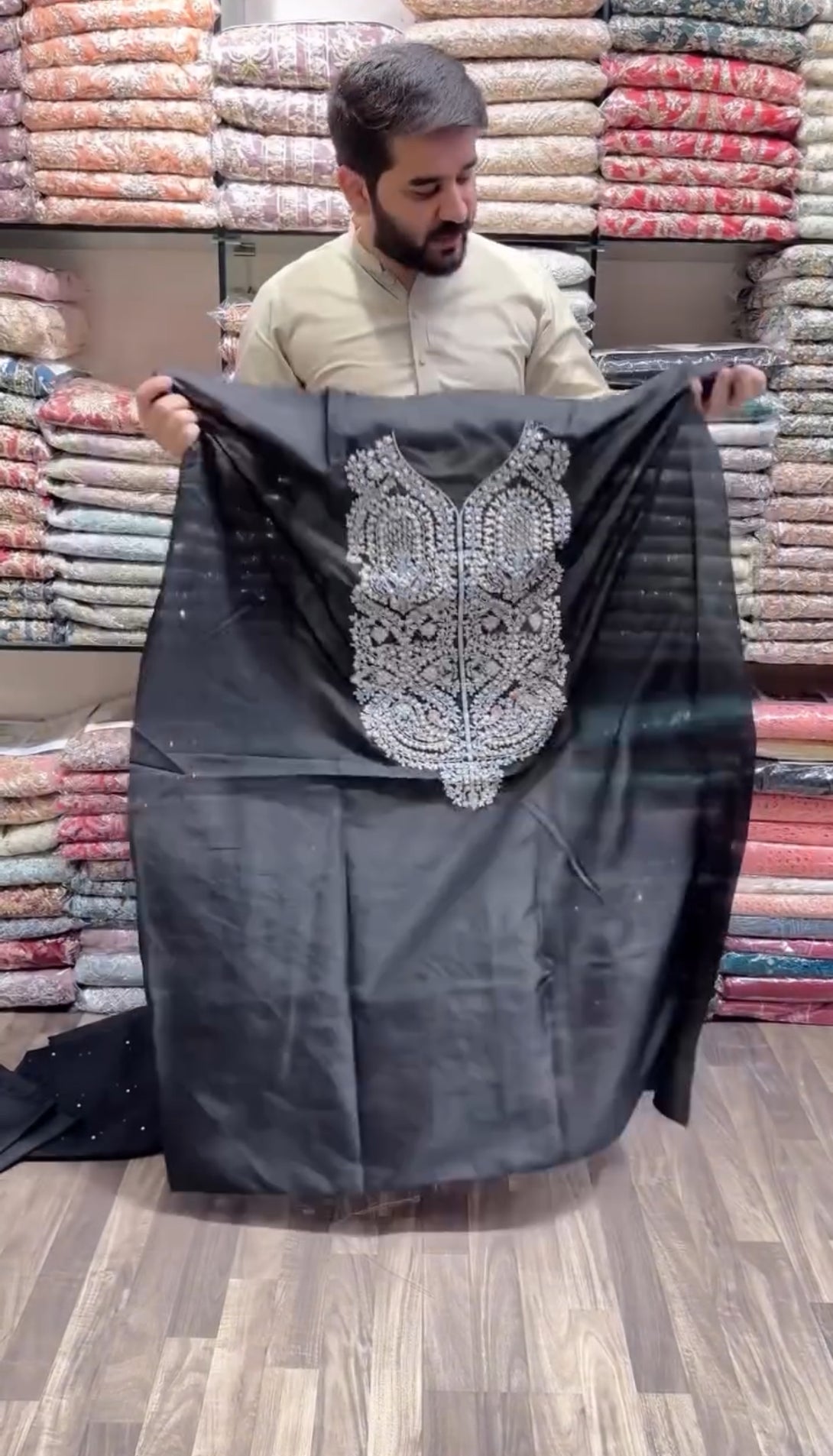 - Raw Silk Embroidered Sleeves With Handmade Work
