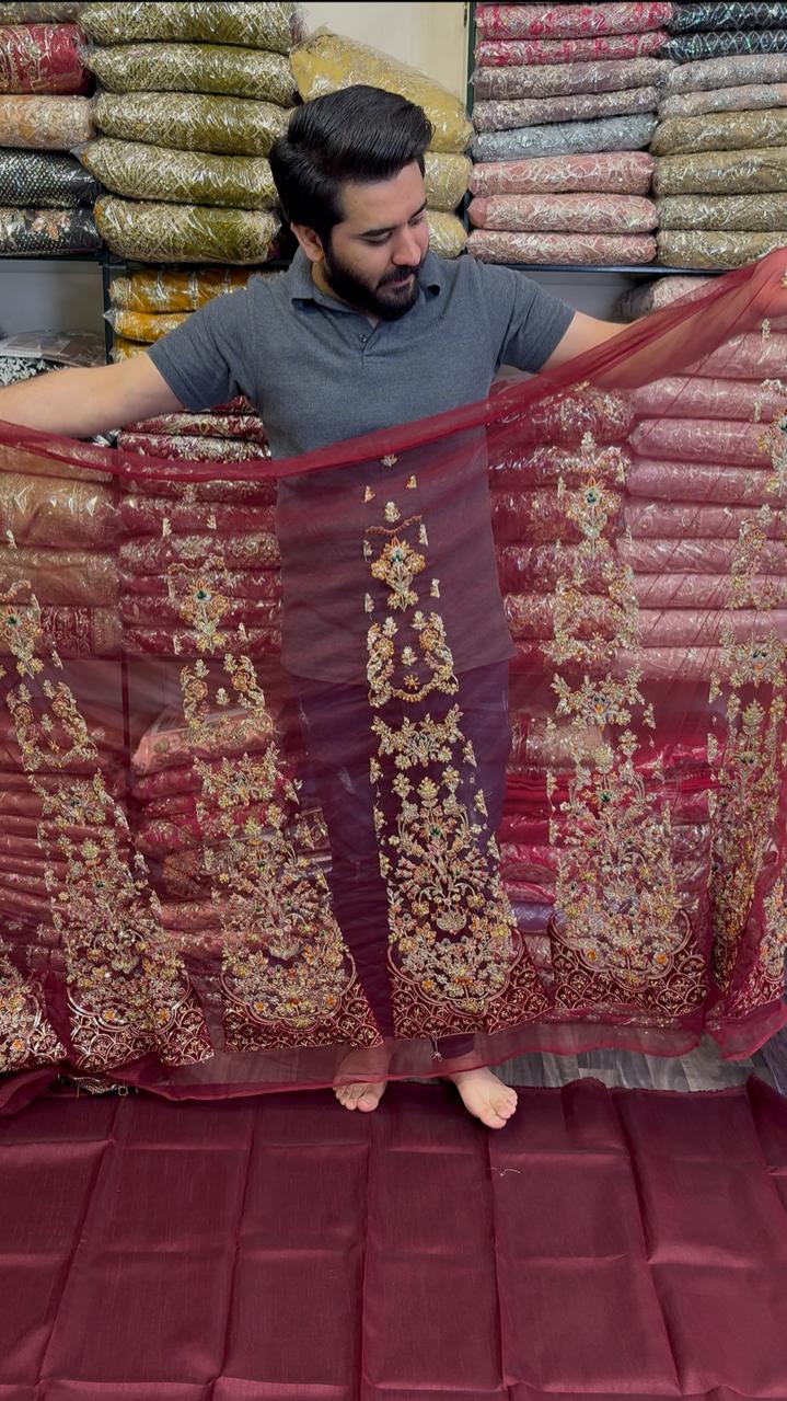Roza' is an ethereal blend of traditional craftsmanship & intricate detailing - encircled with meticulous 3D floral work woven with exquisite dabka-naqshi work, delicate stones & pearls. Draped in an enchanting red palette, this creation showcases a canvas of glimmering sequins cascading gracefully all over the sheer fabric epitomizing the true essence of femininity. The delicate details of cut dana & cut moti seamlessly elevate this masterpiece to its classic status. With its refined elegance & bold allure you can wear it on nikah & baraat occasions.
